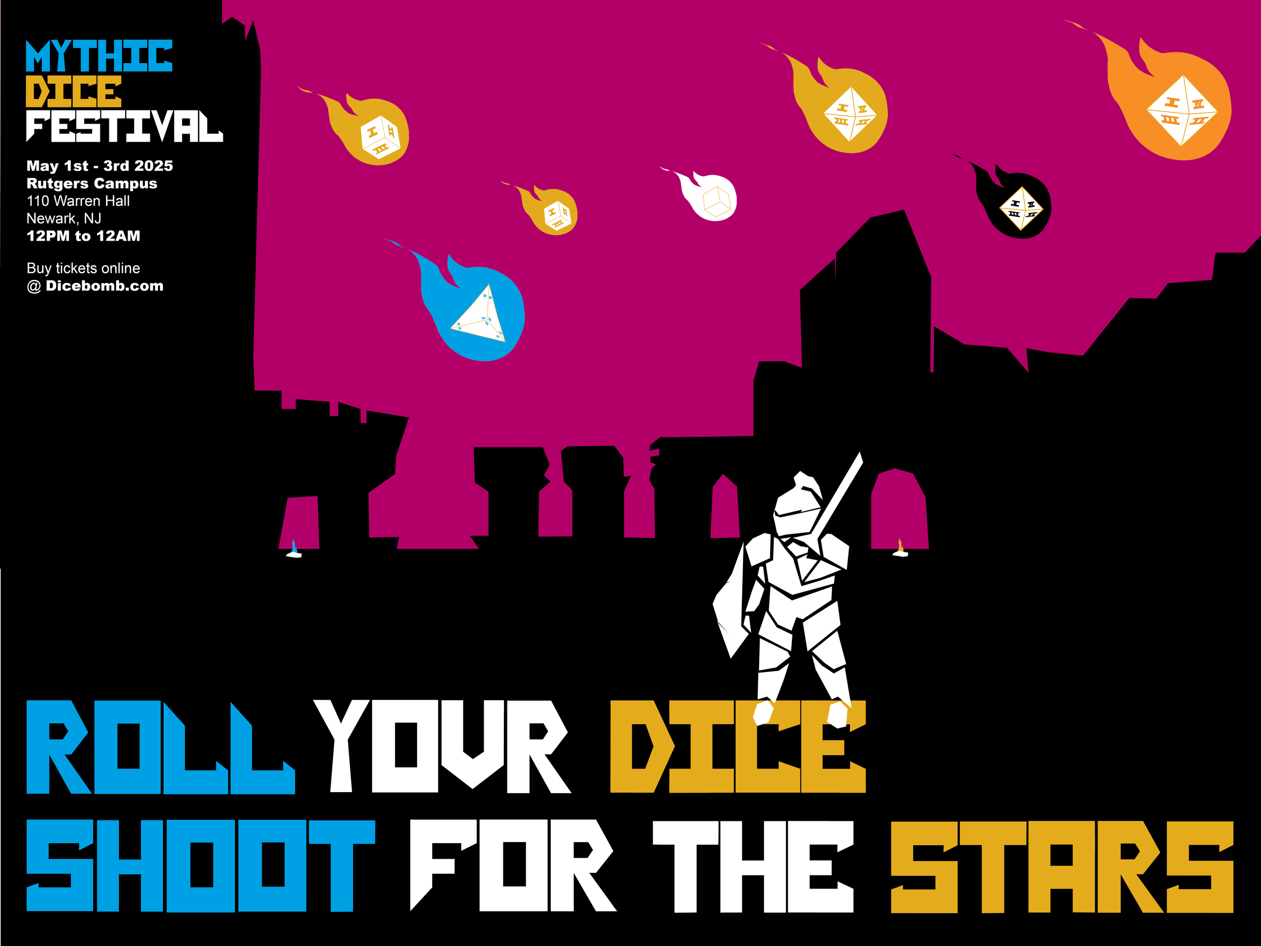 GIVEN OBJECTIVE: Develop a brand identity for Mythic Dice Festival, a New Jersey–based three day festival where people who are into traditional pen and paper role playing games can hang out and play together. Games, movies, raffles, celebrity Q&A’s and so much more! Bring your friends, cause you can never have enough fun! The goal was to create a system that captures the excitement, and creativity of adventure through custom typography, bold colors, and dynamic composition.